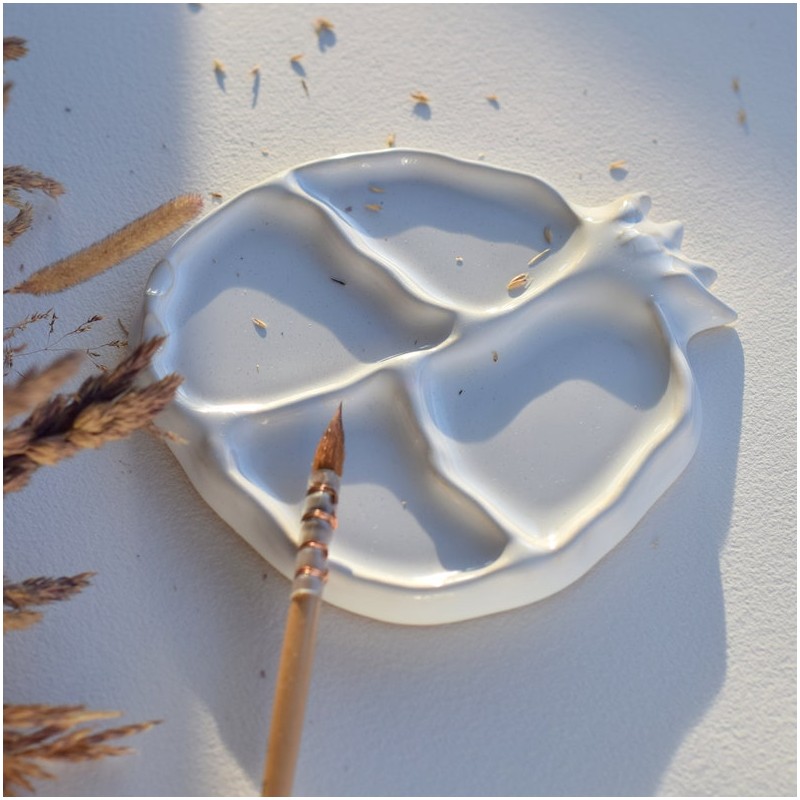 La tavolozza è fatta a mano e rivestita con smalto lucido bianco.