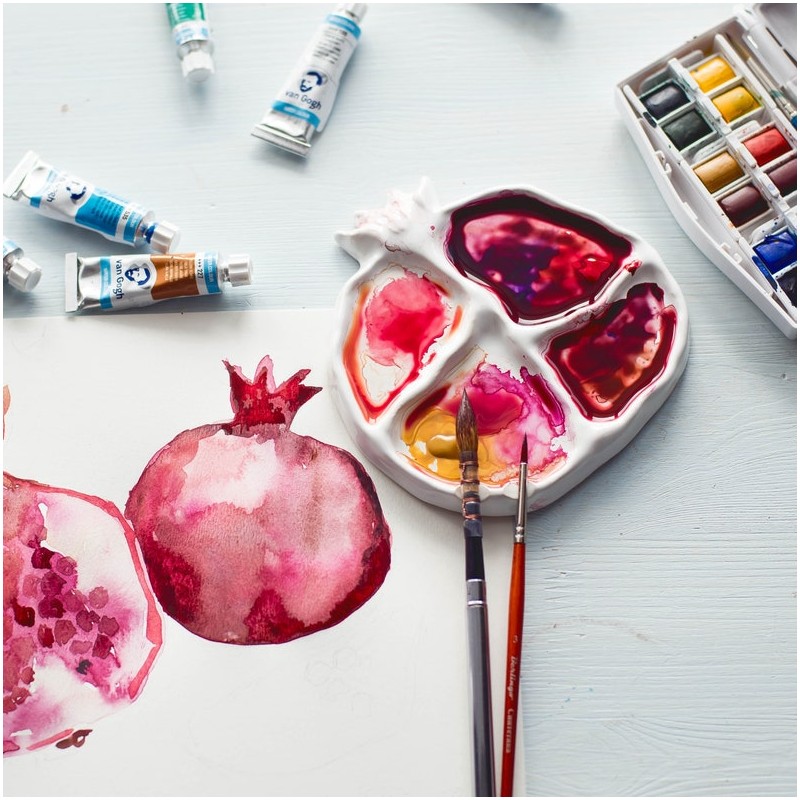 Tavolozza in ceramica di miscelazione, progettata per acquerello, acrilico, tempera.