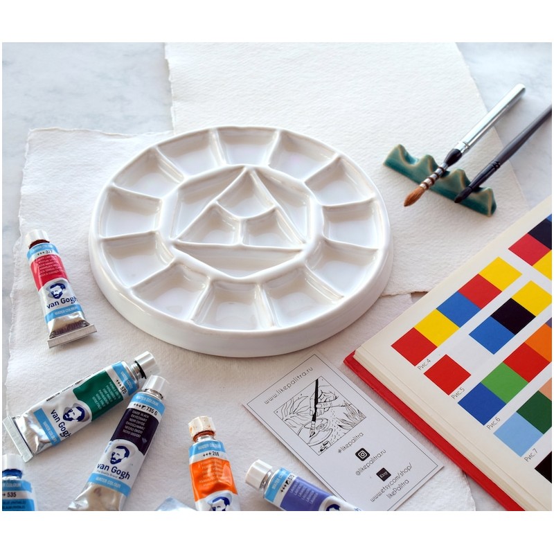 Tavolozza in ceramica di miscelazione, progettata per acquerello, acrilico, tempera.