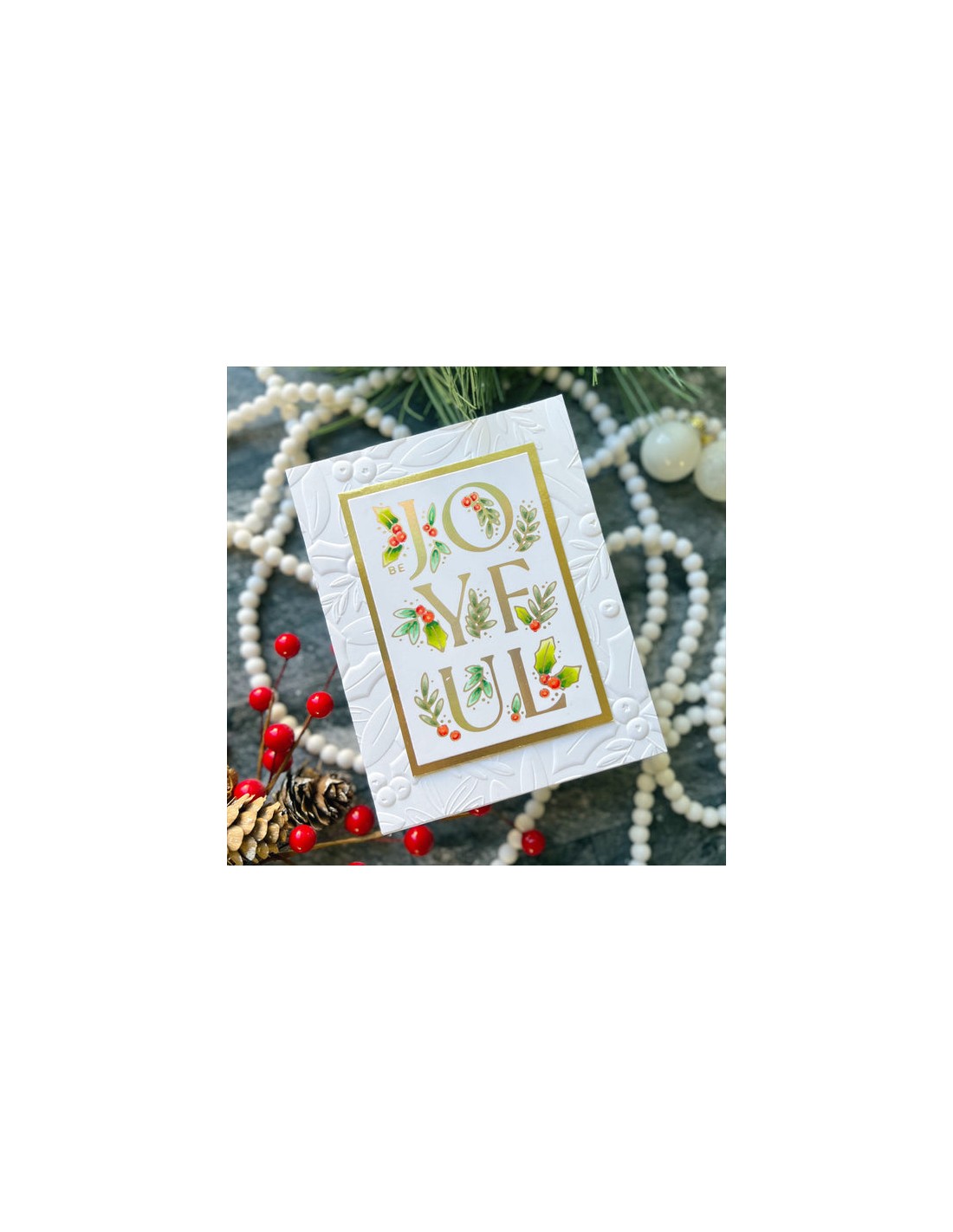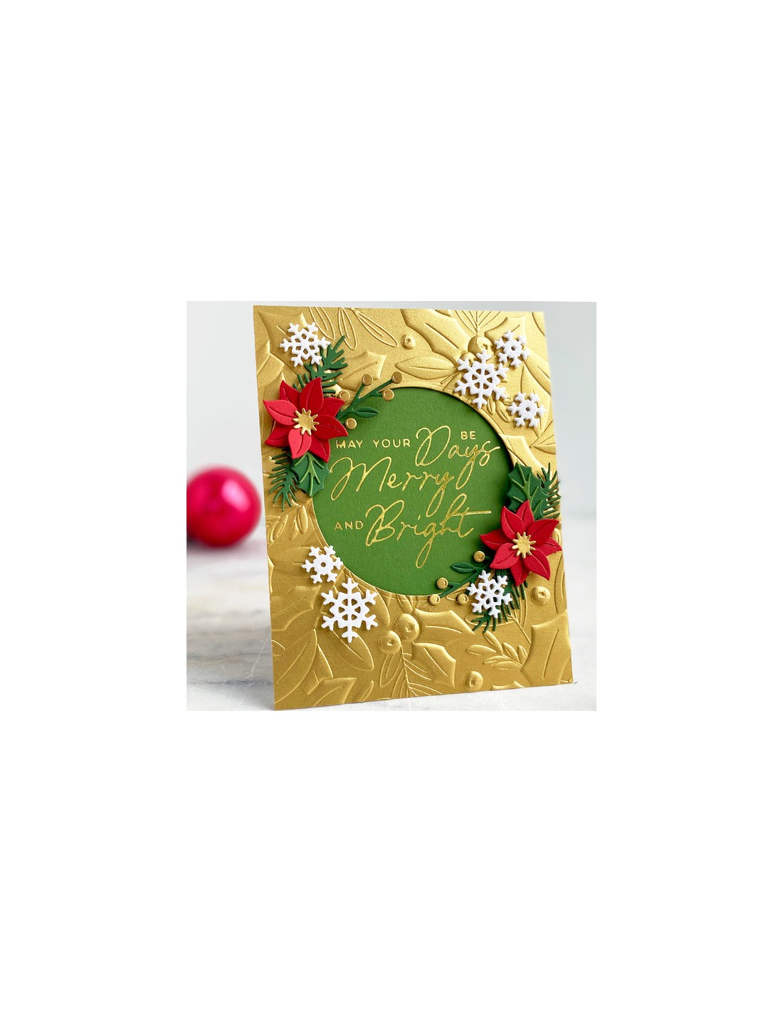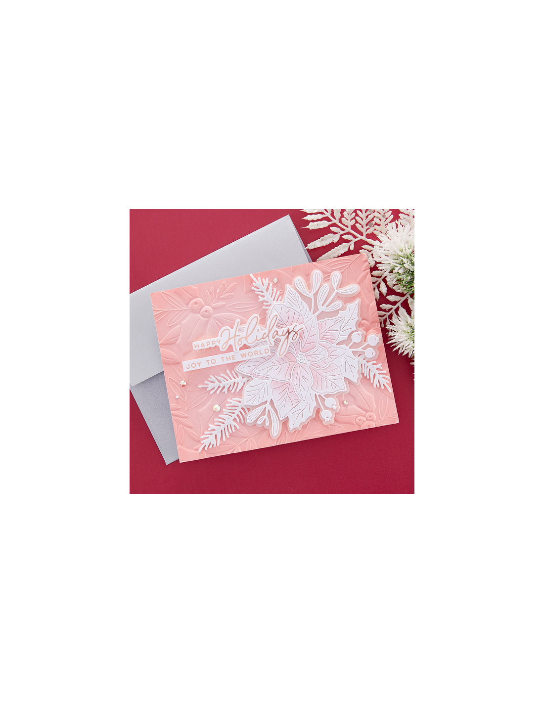 Holly & Foliage 3D Embossing Folder è una cartella in rilievo da 5,50 x 8,50 pollici con uno sfondo sorprendente pieno di foglie di agrifoglio, bacche e disegni di fogliame.