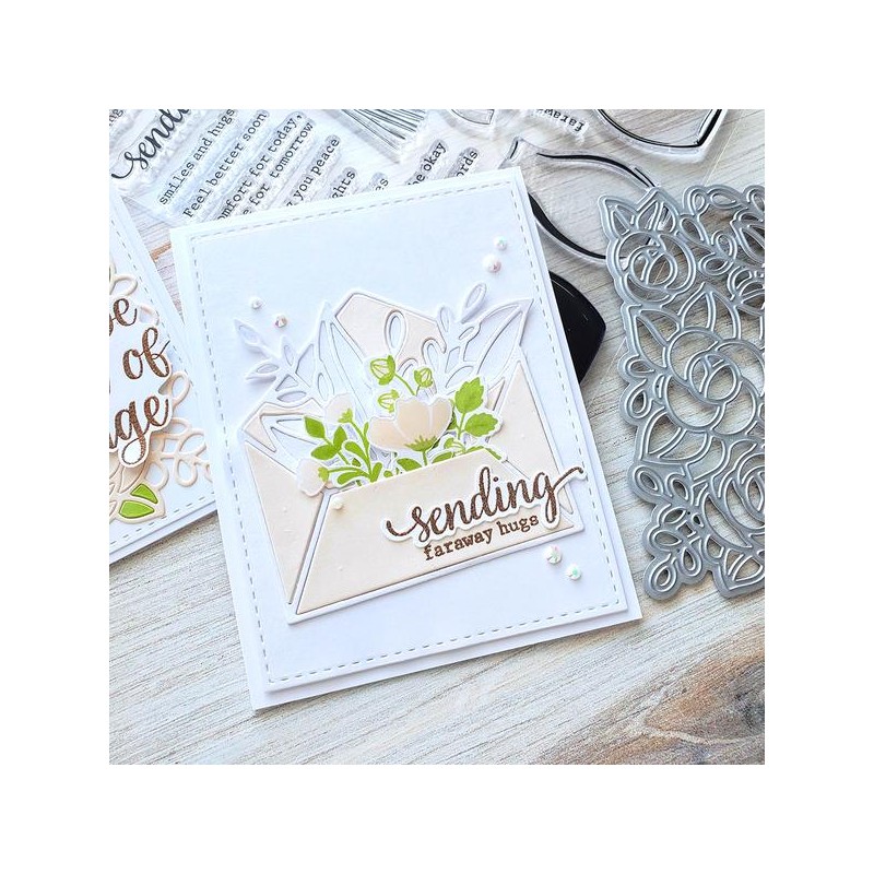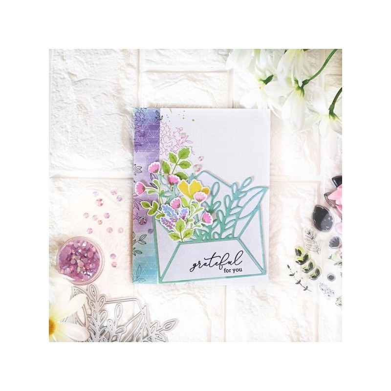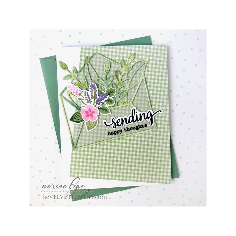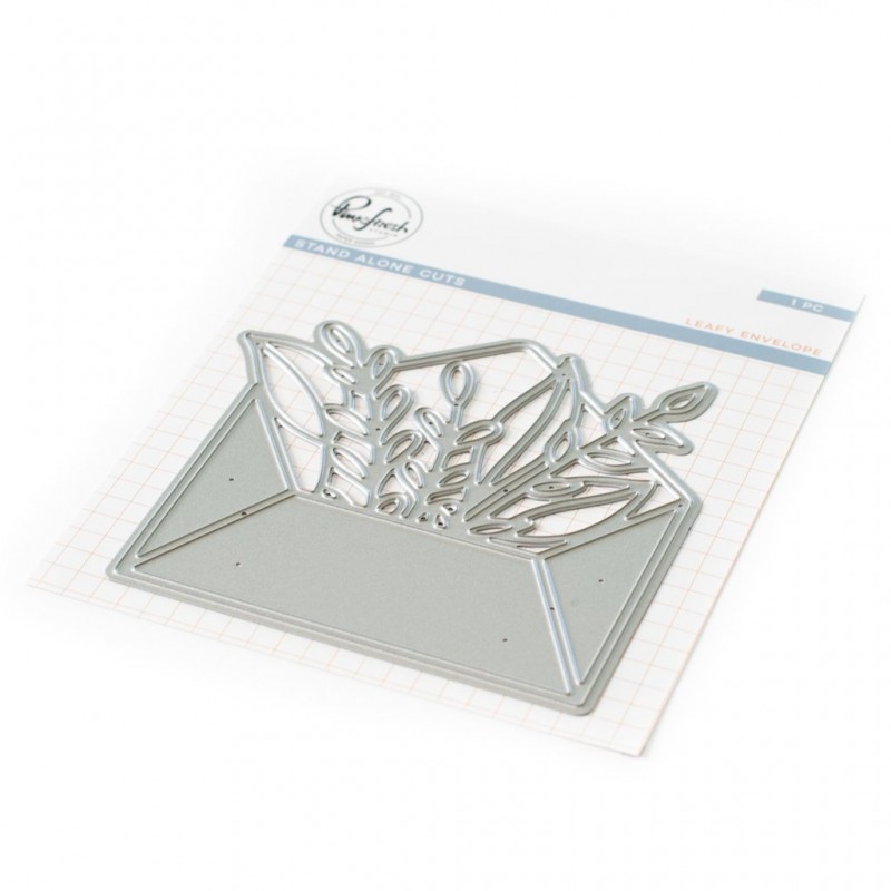 Leafy envelope die measures approximately 3.65" x 3.45" after die cutting.
