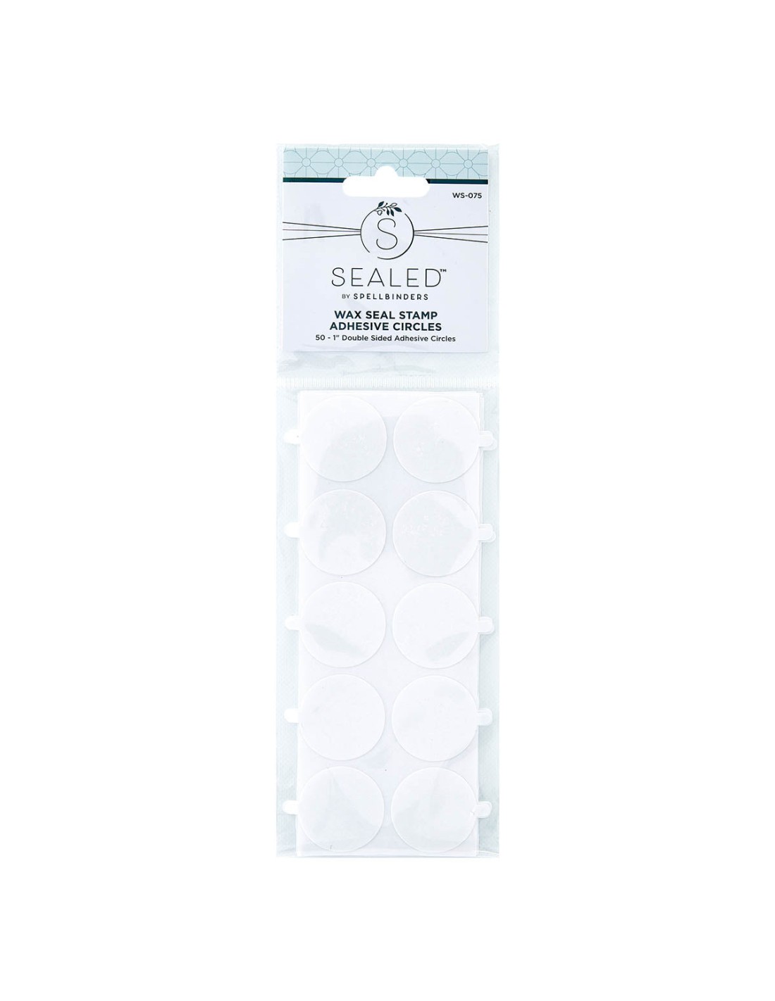 Sealed Wax Seal Adhesive Circles are 1-inch round clear double-sided adhesives. The tabs on each circle helps to create wax seal stamps ahead of time and adhere to your projects when you are ready. They are easy to use and come in a total of 50 circles. There are 10 circles per sheet in a five sheet pack.